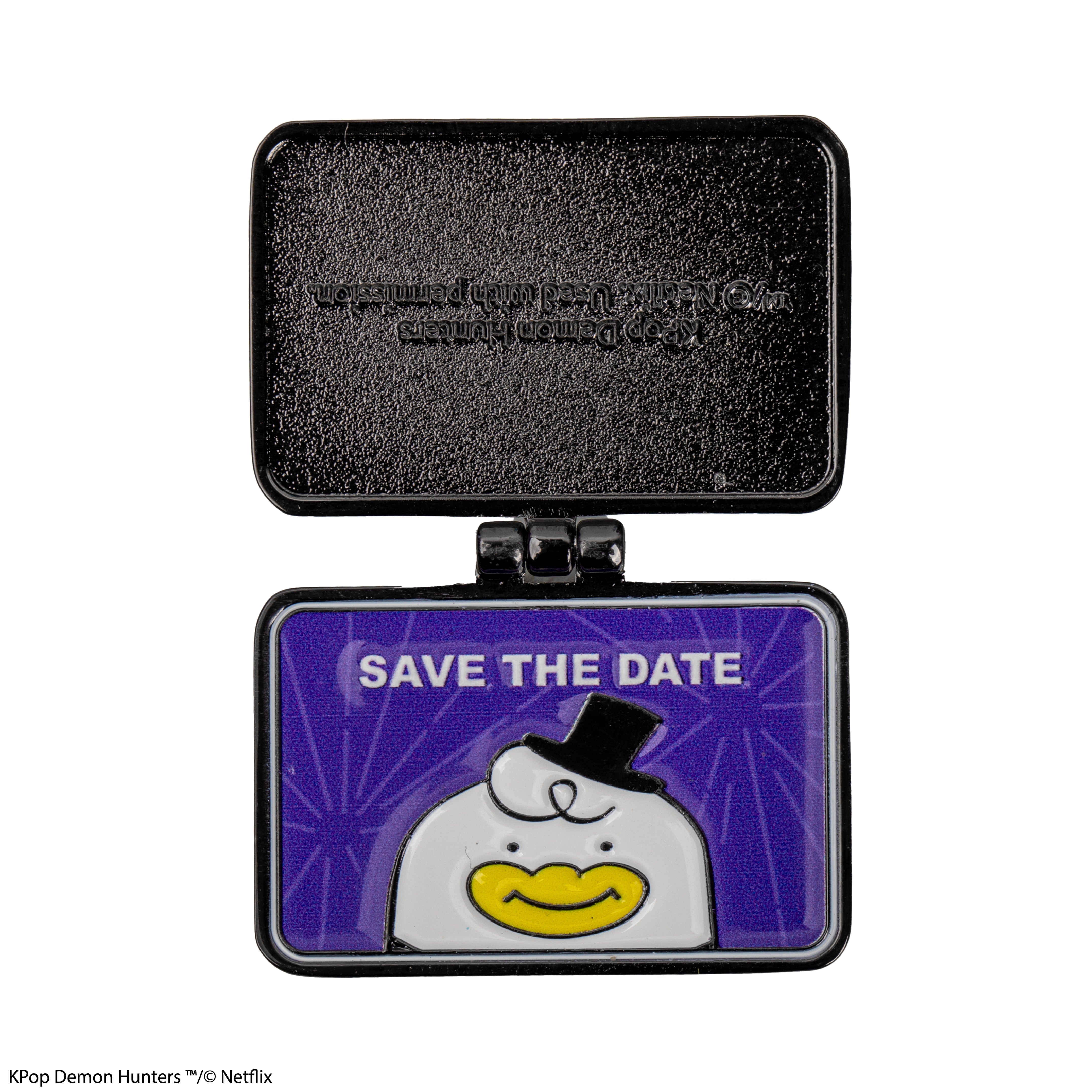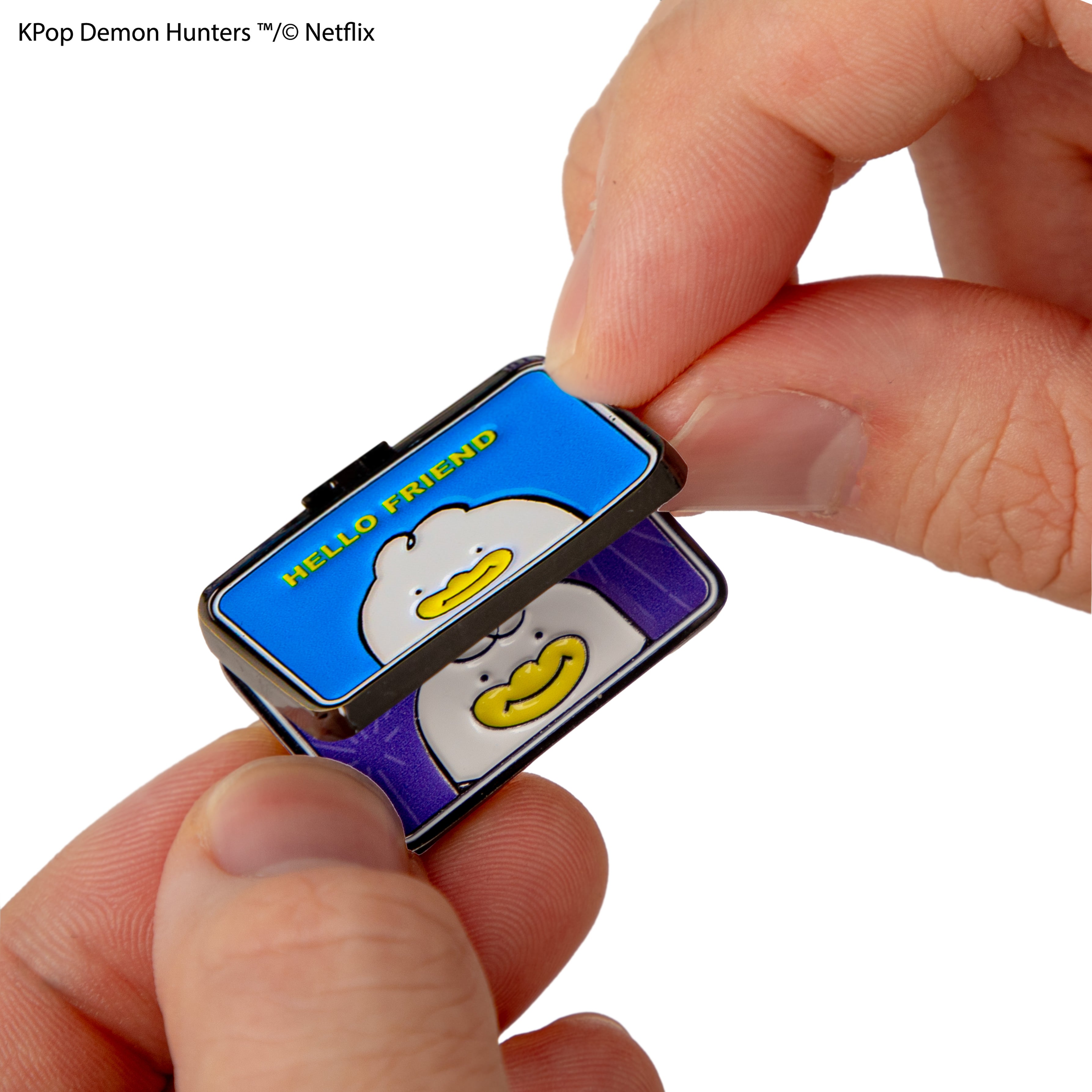 Cute meets clever with the Rujinu Letters pin. It's a playful, interactive design that’s all about Rumi and Jinu. Featuring an adorable character and a fun flipping element, this pin replicates the greeting cards that the two heroes send to eachother in KPop Demon Hunters.