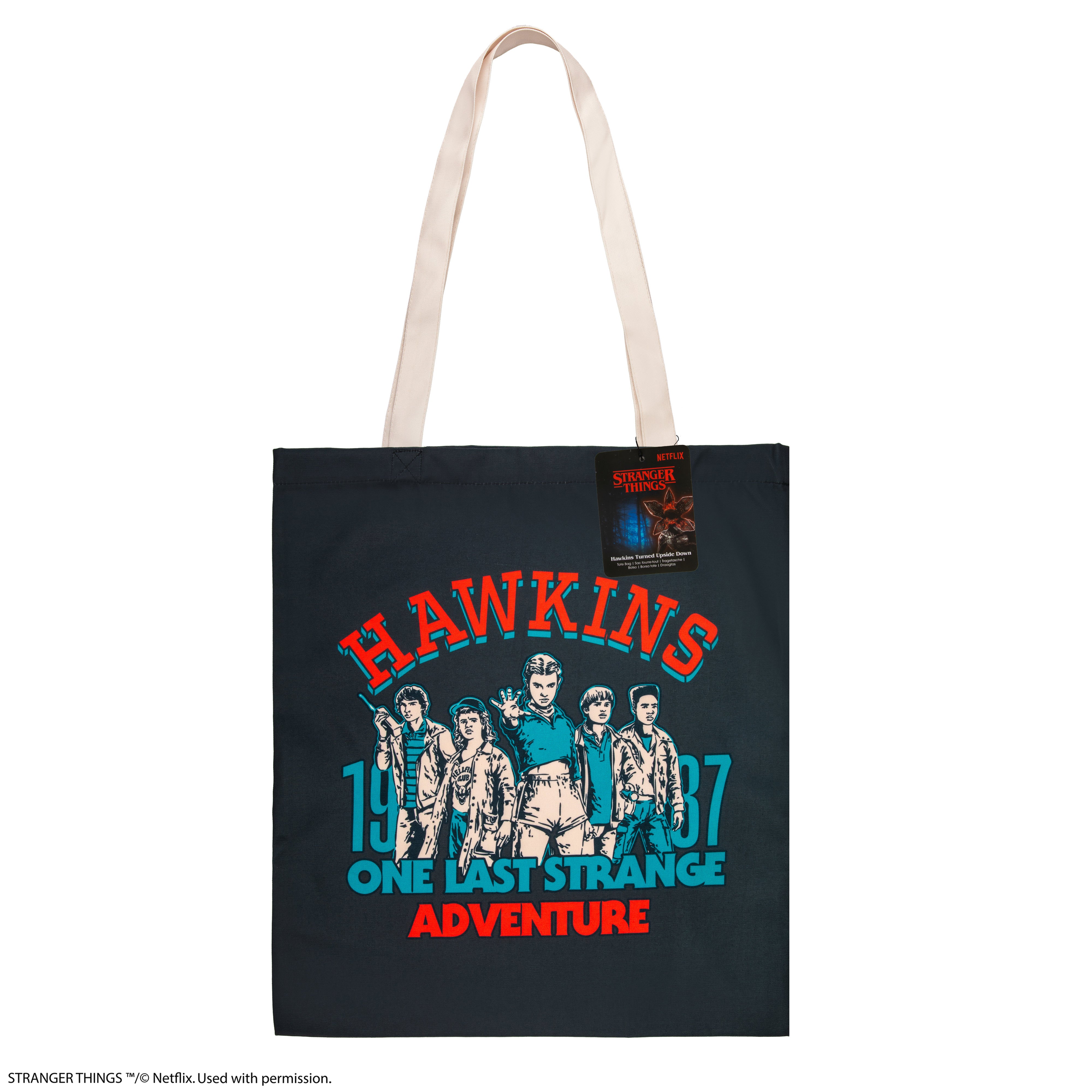 Bring this tote bag to finally confront the shadowy forces of the Upside Down! The retro graphic features the core Party: Eleven, Mike Wheeler, Dustin Henderson, Lucas Sinclair, and Will Byers, united by the promise: One Last Strange Adventure. This striking design is perfect for displaying your loyalty to the kids of Hawkins.