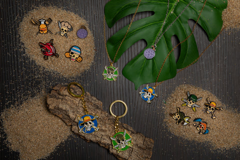 Bereiten Sie sich auf ein stilvolles Abenteuer vor, während wir eine Reihe exquisiter Halsketten, Schlüsselanhänger und Pins zu unserer neuen One Piece-Lizenz enthüllen. Diese Schatzkammer an Accessoires ermöglicht es Ihnen, Ihre Leidenschaft für One Piece zu feiern und gleichzeitig eine Hommage an eine Reihe geliebter Charaktere von Luffy und Buggy bis hin zu Nami und Arlong zu erweisen!