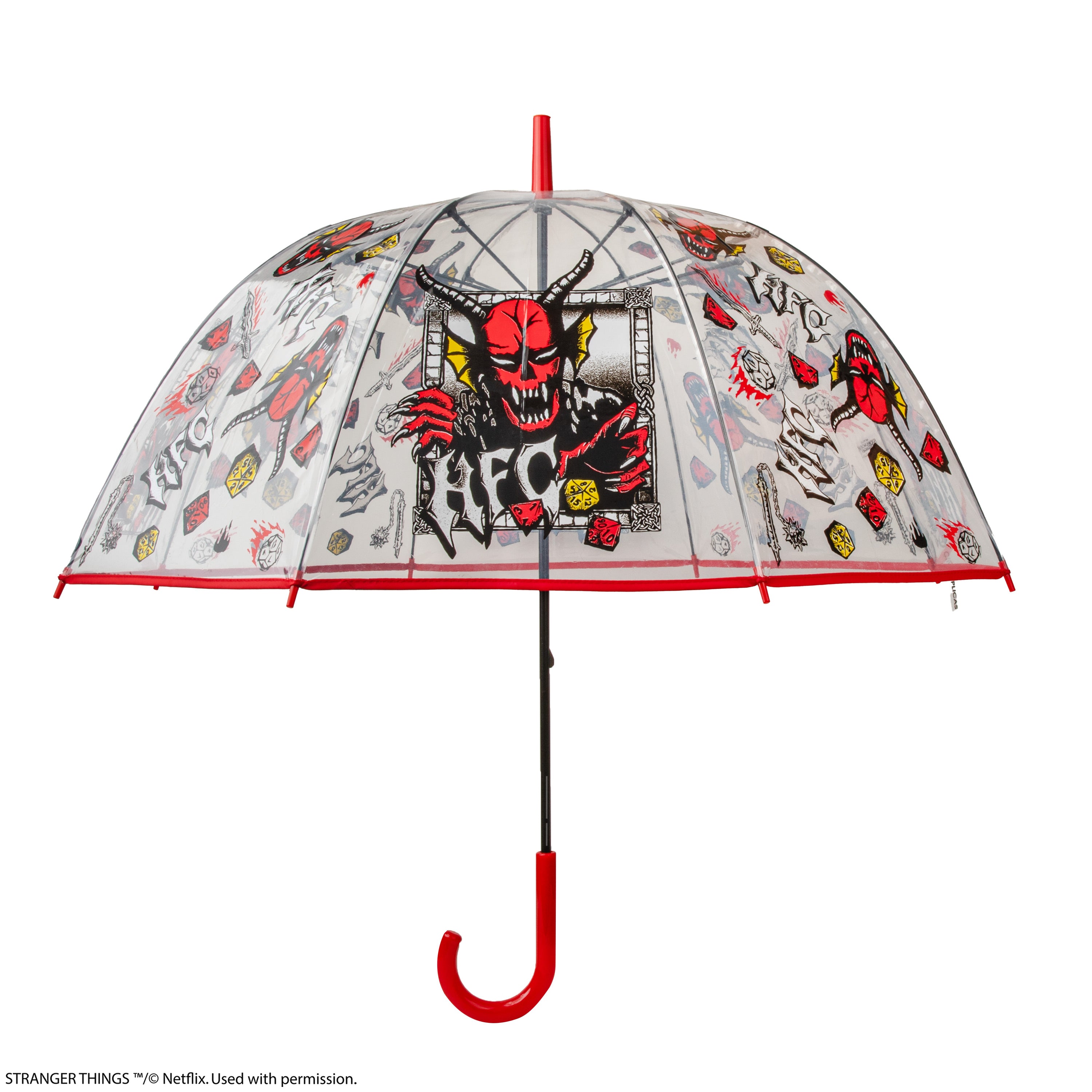 Embrace the chaos of the Upside Down and defy the gloom with the Hellfire Club Transparent Umbrella!