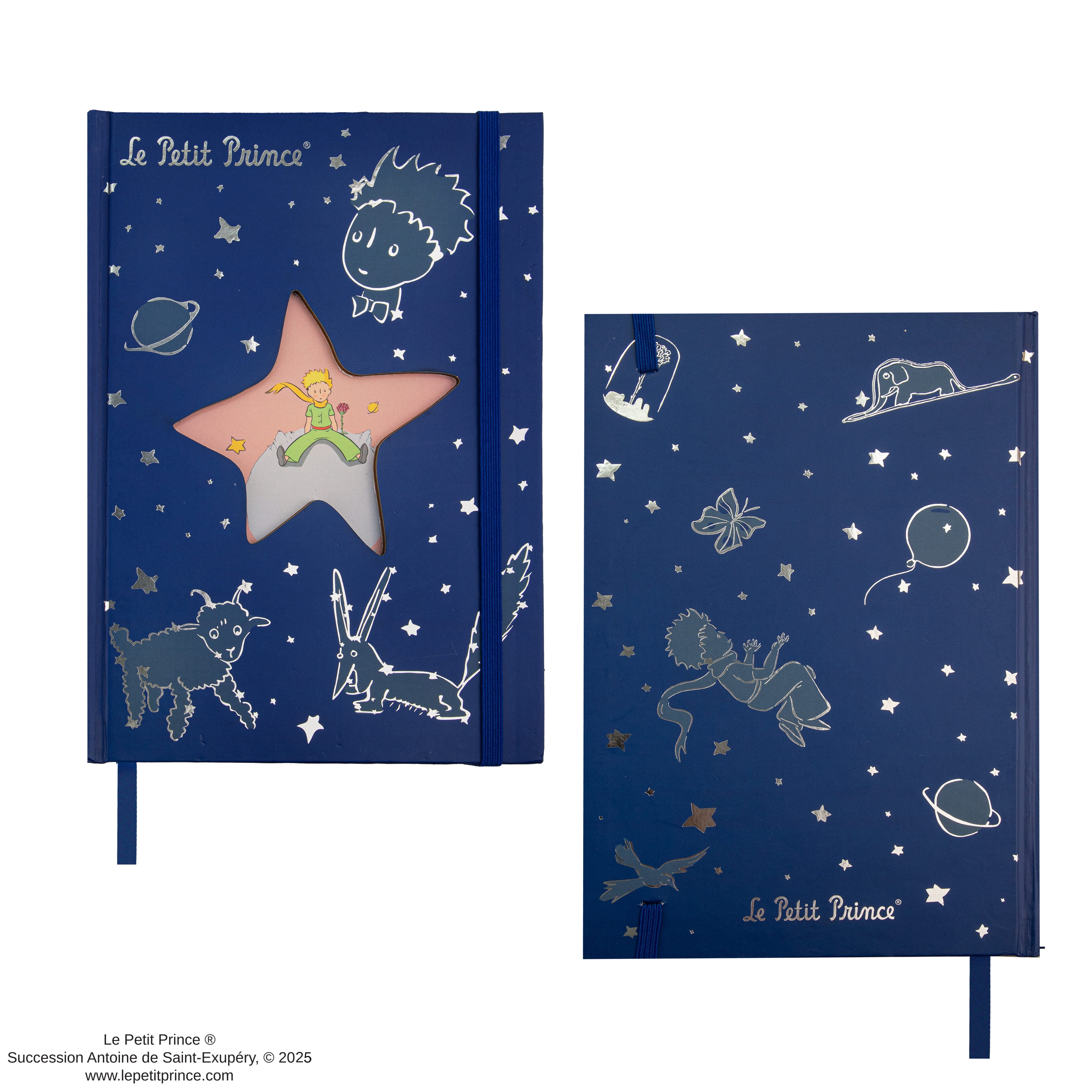 Un recorte en forma de estrella en el centro revela una dulce escena: el Principito y su amada rosa sentados juntos en su asteroide. Este detalle intrincado te invita a llenar sus páginas con tus propias aventuras.