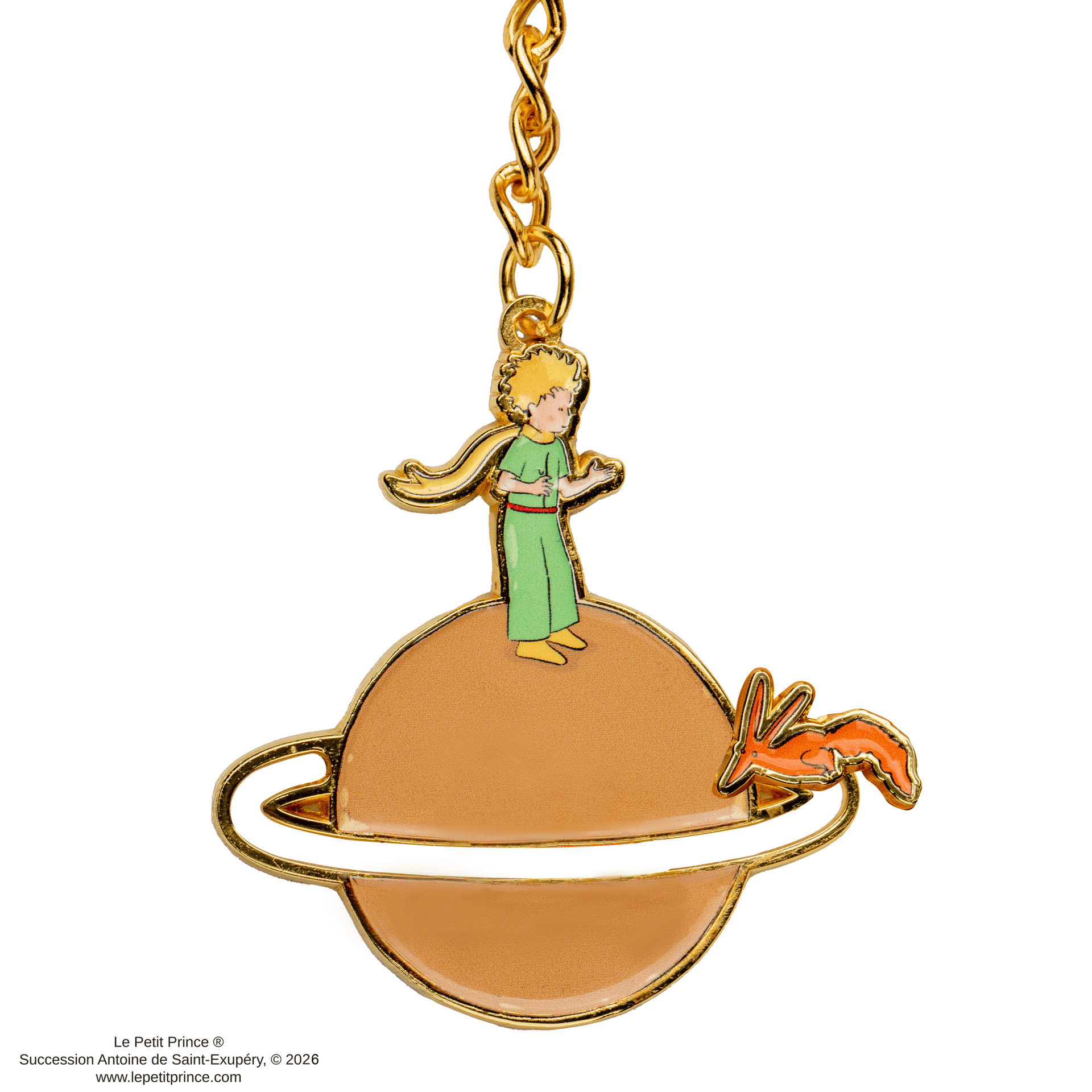 Introducing the Le Petit Prince Tame Me Metal Keychain, an enchanting accessory that perfectly captures the essence of meaningful relationships from Antoine de Saint-Exupéry's beloved story. This keychain features a meticulously designed pendant of the Little Prince alongside a moving fox, adding a playful and charming element to the piece. Its vibrant colors and intricate craftsmanship make it a welcome addition to any collection, appealing to people of all ages.